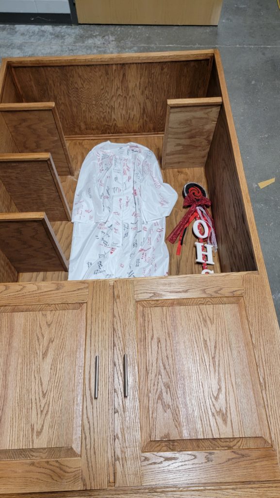 The Renaissance students teamed up the wood shop students to create a beautiful display case for their C2G (Commitment to Graduate) robe.
